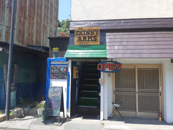 まずは「The SKINNY ARMS」です。リノベ第1号店「オクトワン・ブルーイング」の2軒隣の2階にオープンしたお店で、ランチはハンバーガーなどを食べることのできるショップ、夜はBARで盛り上がっています。