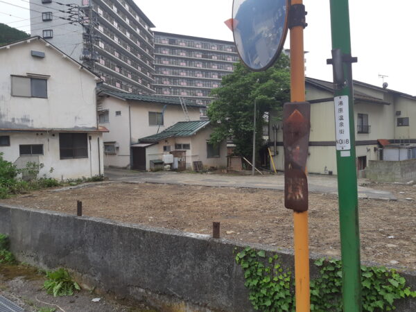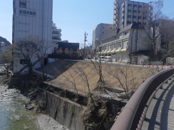 昨年から解体が進められていたSホテル別館の解体工事が完了し、温泉街の北の玄関口がスッキリとキレイになりました。