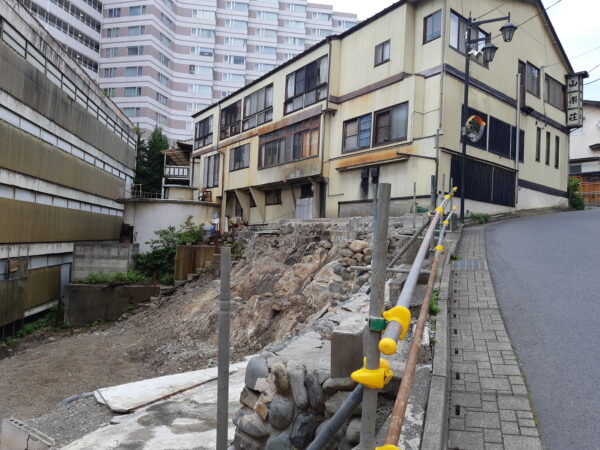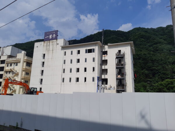 また以前トピックスで紹介したSホテルの解体ですが、今度は道を挟んだ向かいの別館の解体がスタートしました。この解体が完了すれば温泉街の北の玄関口の顔が大きく変わります。今から楽しみです。