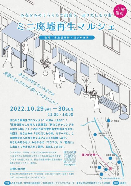 10月29〜30日に「産官学金連携まちづくり」事業の一環で、旧ひがき寮を舞台に東大生チームが企画運営した「ミニ廃墟再生マルシェ」が開催されました。